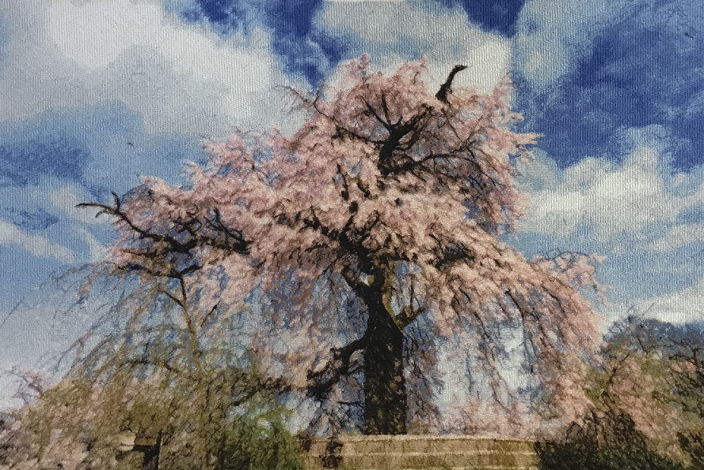 ちょうど現存12天守のシリーズを終えたころ、次は何を作ろうかと考えていた時期に、偶然見かけた祇園・円山公園の枝垂れ桜のフリー画像を使って、桜の作品を試してみることにしました。